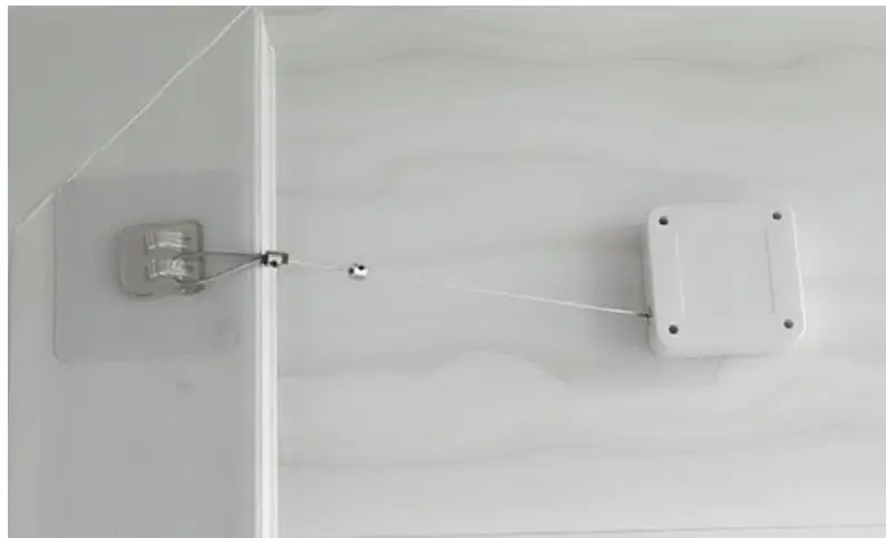 A fixação do sistema é através de adesivo 3M de alta capacidade, tanto na carretilha quanto no gancho. Esta tecnologia evita furos em portas e batentes, preservando o material e impactando significativamente a sujeira.